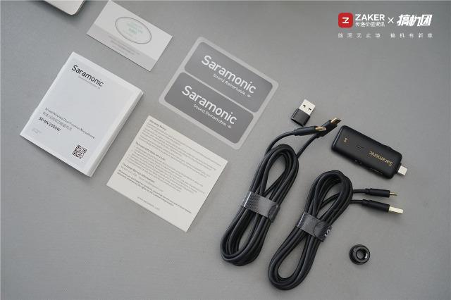 除了主機(jī)外的全家福,提供有紙質(zhì)說明書、保除卡、貼紙、Type-C母頭轉(zhuǎn)USB-A轉(zhuǎn)接頭、RX接受器、USB-A轉(zhuǎn)Type-C數(shù)據(jù)線、Type-C轉(zhuǎn)Type-C數(shù)據(jù)線及3/8轉(zhuǎn)5/8支架轉(zhuǎn)換螺母。