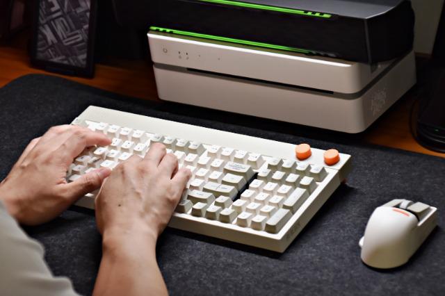 鍵帽使用 PBT 材質(zhì),經(jīng)久耐磨,指尖觸感細(xì)膩,長(zhǎng)時(shí)間使用表面也不易有油光,鍵帽正面字符圖案采用熱升華工藝,字符清晰柔和且不易磨損,最適合長(zhǎng)時(shí)間打字。鍵帽高度采用 11.8mm 的自研 OEM 高度,線條設(shè)計(jì)風(fēng)格,邊角方正,保持和鍵盤設(shè)計(jì)風(fēng)格一致。