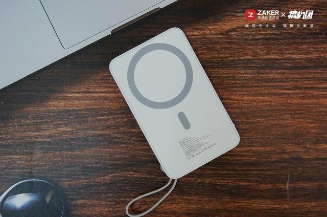 充電寶的背面實際上才是它的無線充電區(qū)域,它采用了18顆N52磁芯,可以將支持磁吸的手機牢牢地吸附在上面,即使帶殼也能輕松吸附。