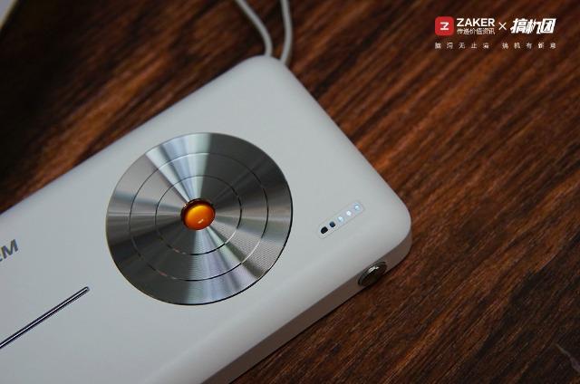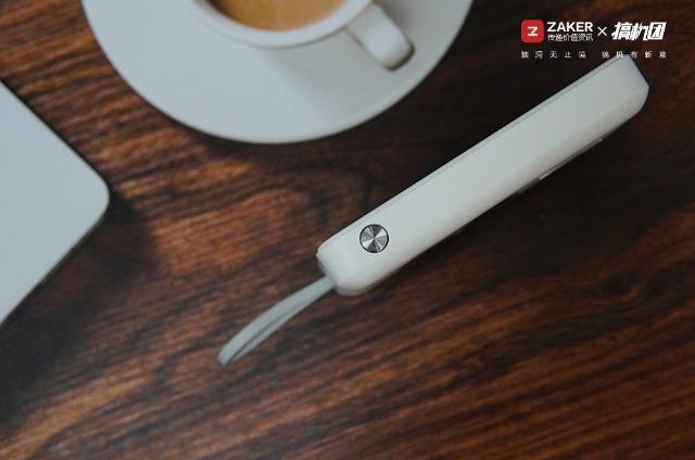 另外機身上還有一個金屬按鍵,就像相機的快門鍵一樣,按下去之后,可以通過正面的LED指示燈查看剩余電量。