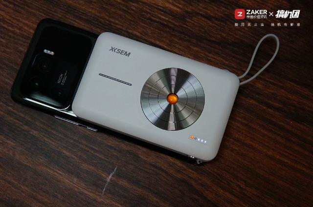 下面我們來試試充電,首先是無線充電,這里我用小米11Ultra進行的測試,將充電寶背面與手機背面貼合,便可以自動吸附在一起。